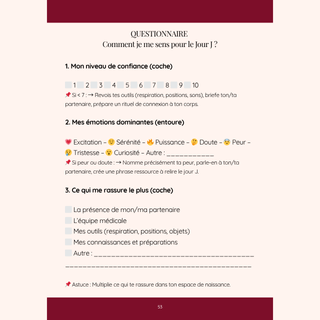 Ce workbook, c’est bien plus qu’un simple guide. C’est une boussole pour te reconnecter à ton corps, à ton souffle, et à ton pouvoir de femme qui enfante. Parce que le savoir, c’est le pouvoir.
